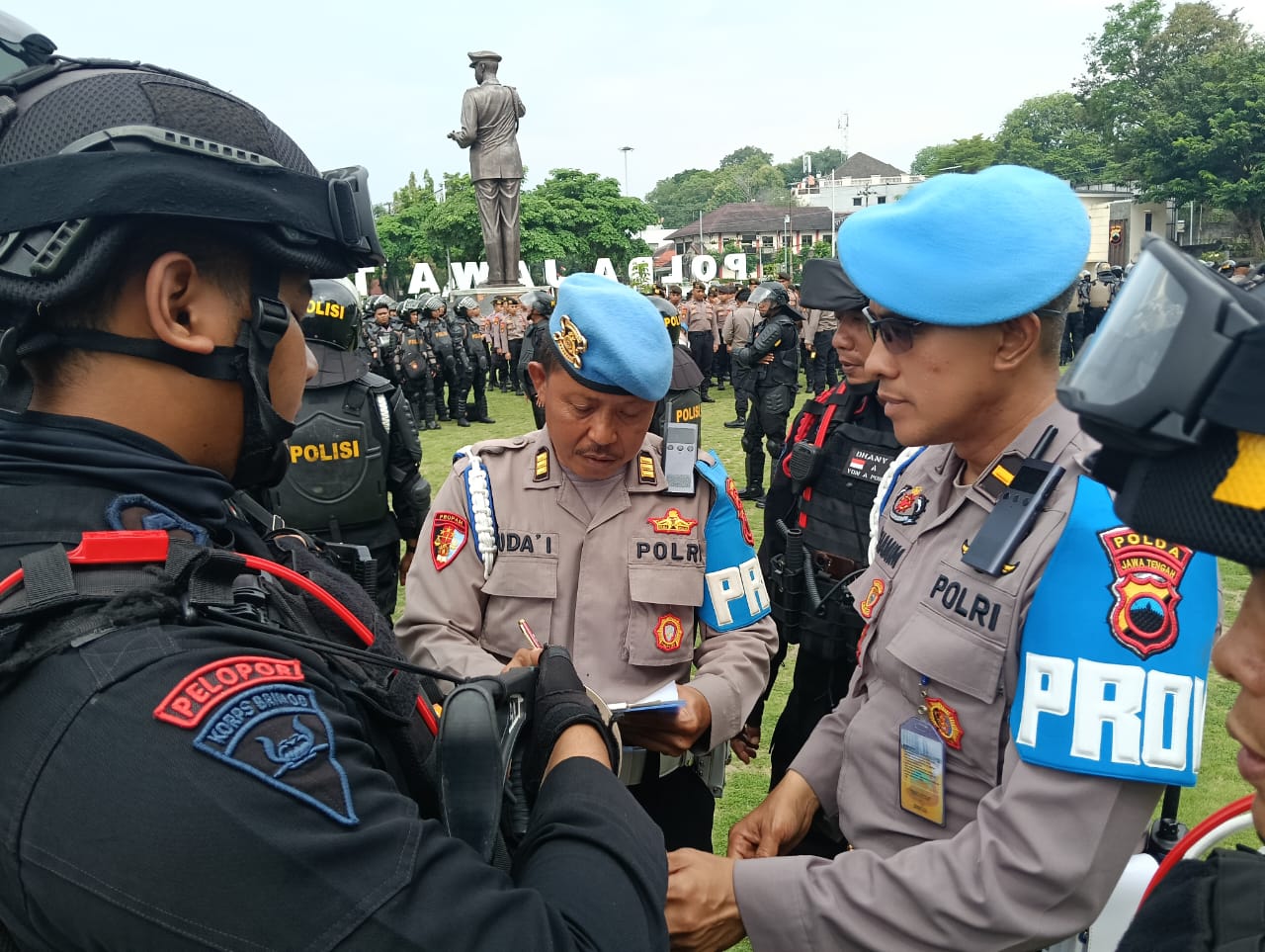 Dalam pengecekan tersebut, Bidpropam memastikan tidak ada personel yang membawa senjata api, tongkat pemukul, ataupun benda berbahaya lainnya. Selain itu, turut dilakukan pemeriksaan terhadap tabung gas air mata untuk memastikan seluruhnya dalam kondisi laik pakai dan tidak ada yang kadaluarsa.