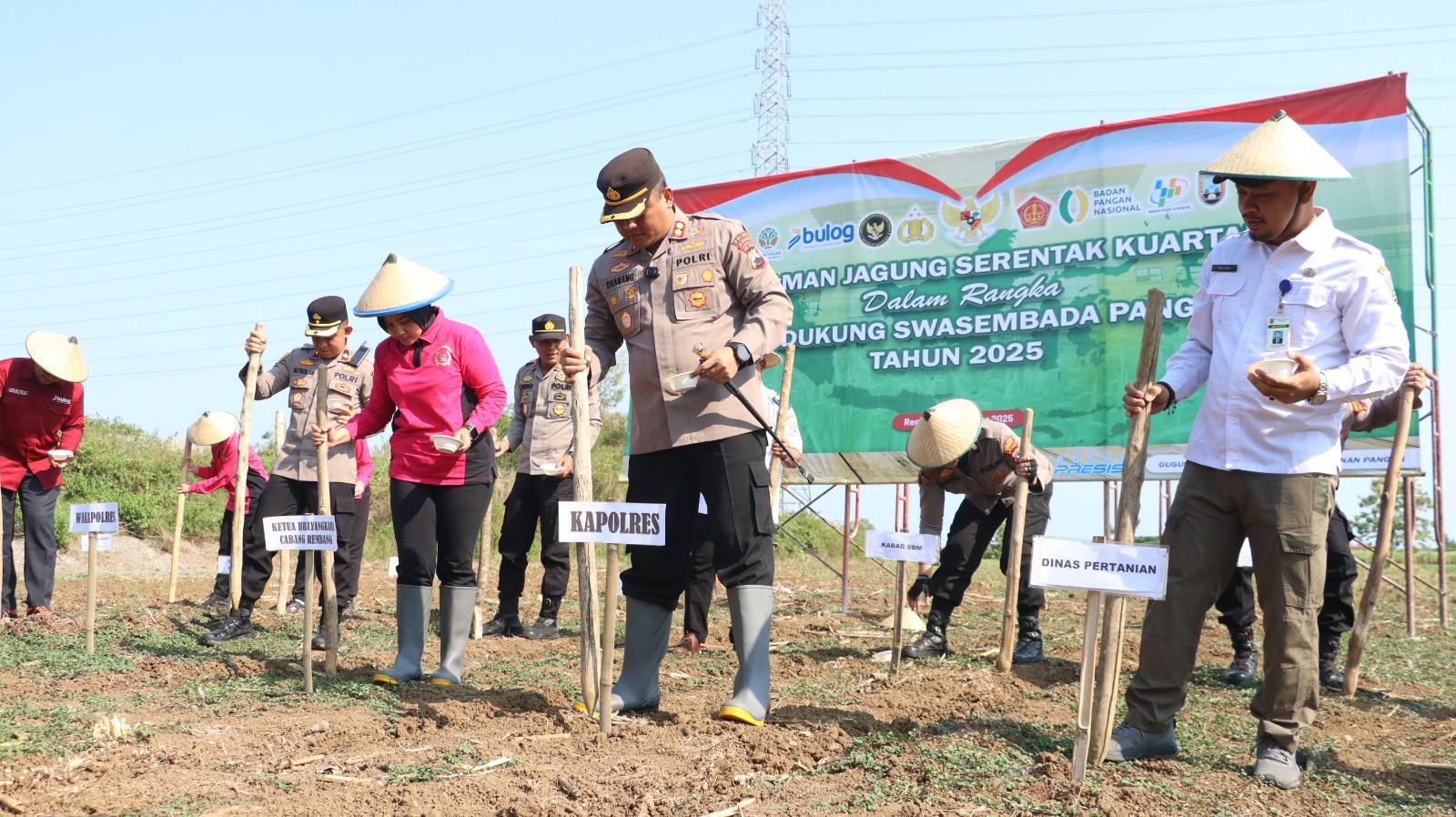 REMBANG – Dalam rangka mendukung ketahanan pangan nasional, Polres Rembang Polda Jateng menggelar kegiatan Penanaman Jagung Serentak Kuartal IV tahun 2025 yang dilaksanakan di lahan milik Polres Rembang, tepatnya di Jalan Rembang–Pamotan, depan Embung Rowo Setro, pada Rabu (8/10/2025).
