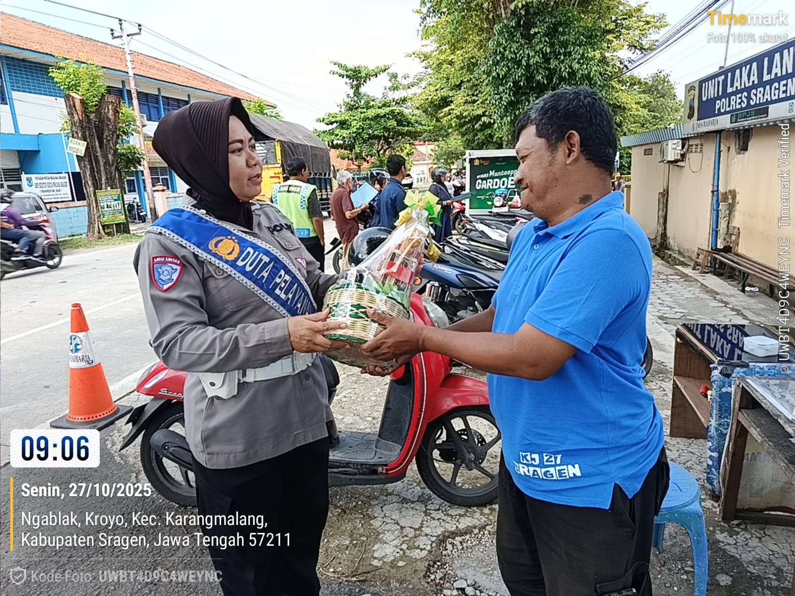 Kegiatan yang berlangsung pada, Senin, 27 Oktober 2025 bertempat di area Satpas SIM Polres Sragen tersebut diwarnai suasana haru dan penuh kehangatan, ketika para petugas lalu lintas menyalurkan bantuan sosial (bansos) kepada masyarakat kurang mampu dan pekerja informal di sekitar lingkungan Satpas.
