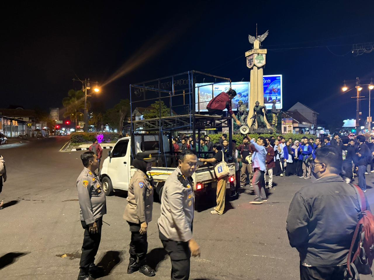Sore harinya, massa aksi mulai berkumpul di kawasan Bundaran Tugu Kartasura. Dalam aksinya, mahasiswa dari berbagai kampus di Solo Raya seperti UNSA, UBY, IIM Surakarta, UMS, Unisri, hingga STIE Surakarta menyampaikan kritik dan tuntutan terhadap kinerja pemerintah dalam setahun terakhir.