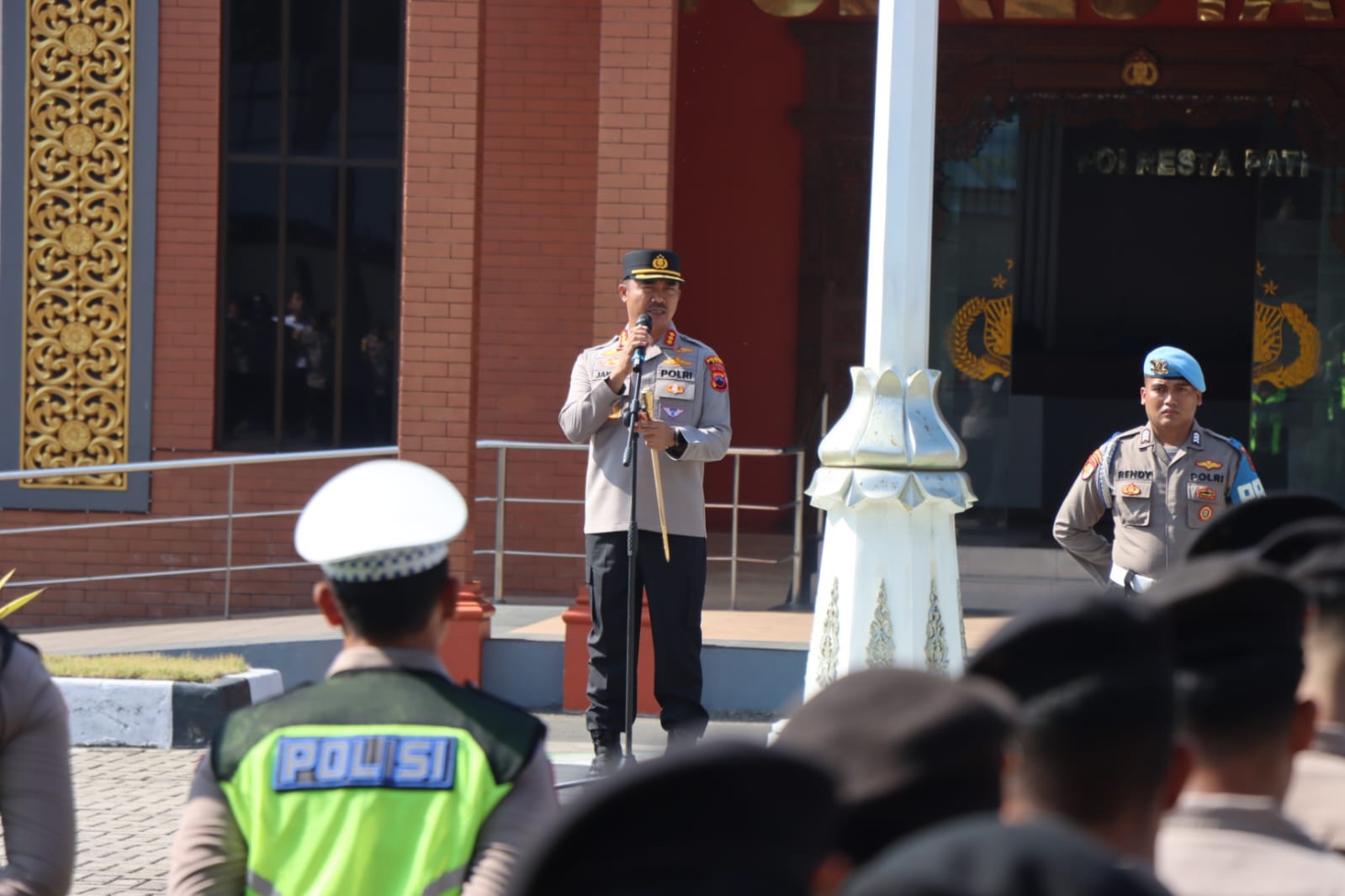 Kapolresta Pati Kombes Pol Jaka Wahyudi menegaskan bahwa pengamanan ini merupakan bentuk kehadiran negara dalam memastikan kegiatan masyarakat berjalan aman, tertib, dan damai.