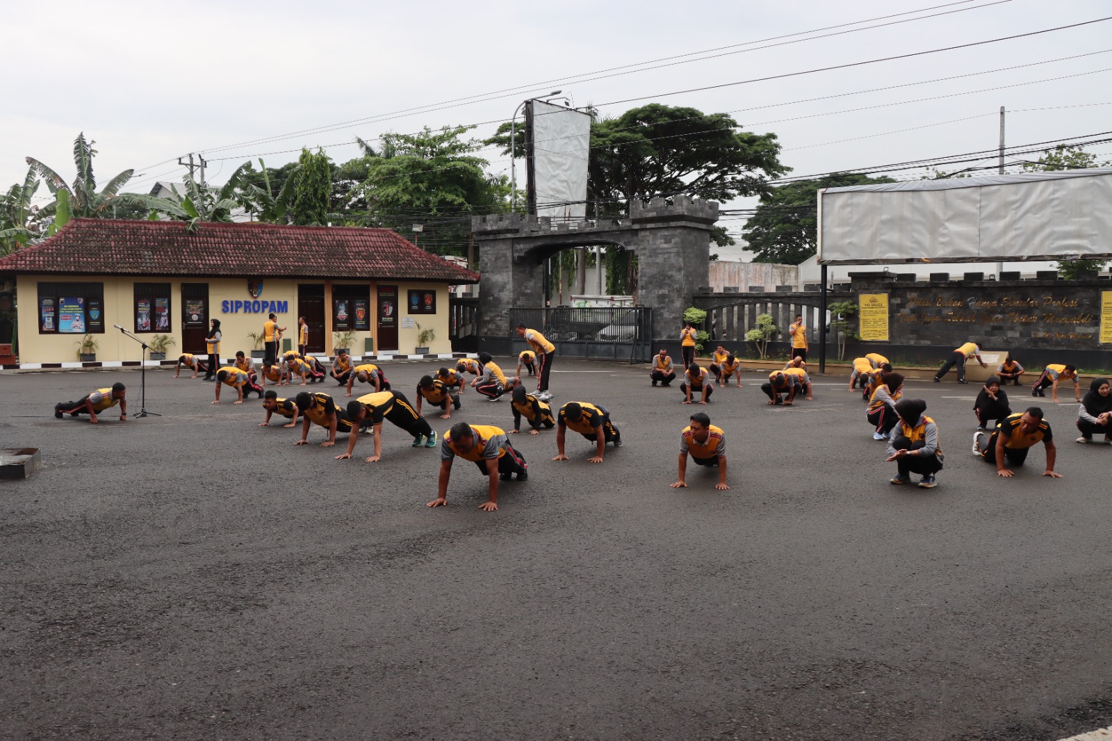 Kegiatan diawali dengan pemanasan dan senam ringan yang dipandu instruktur, kemudian dilanjutkan dengan olahraga bersama yang diikuti oleh seluruh personel. Meski rintik hujan mengguyur, para anggota terlihat antusias dan kompak mengikuti setiap gerakan.