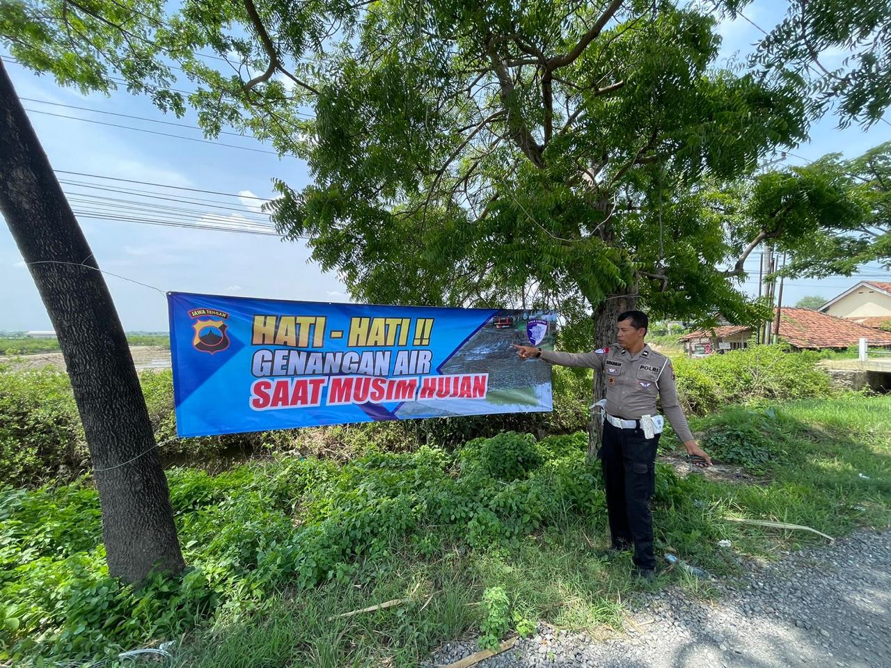 REMBANG – Tribratanews.jateng.polri.go.id, Satlantas Polres Rembang melaksanakan kegiatan pemasangan rambu-rambu himbauan adanya genangan air di sepanjang jalur Pantura Purworejo, Rembang, pada Kamis (6/11/2025).