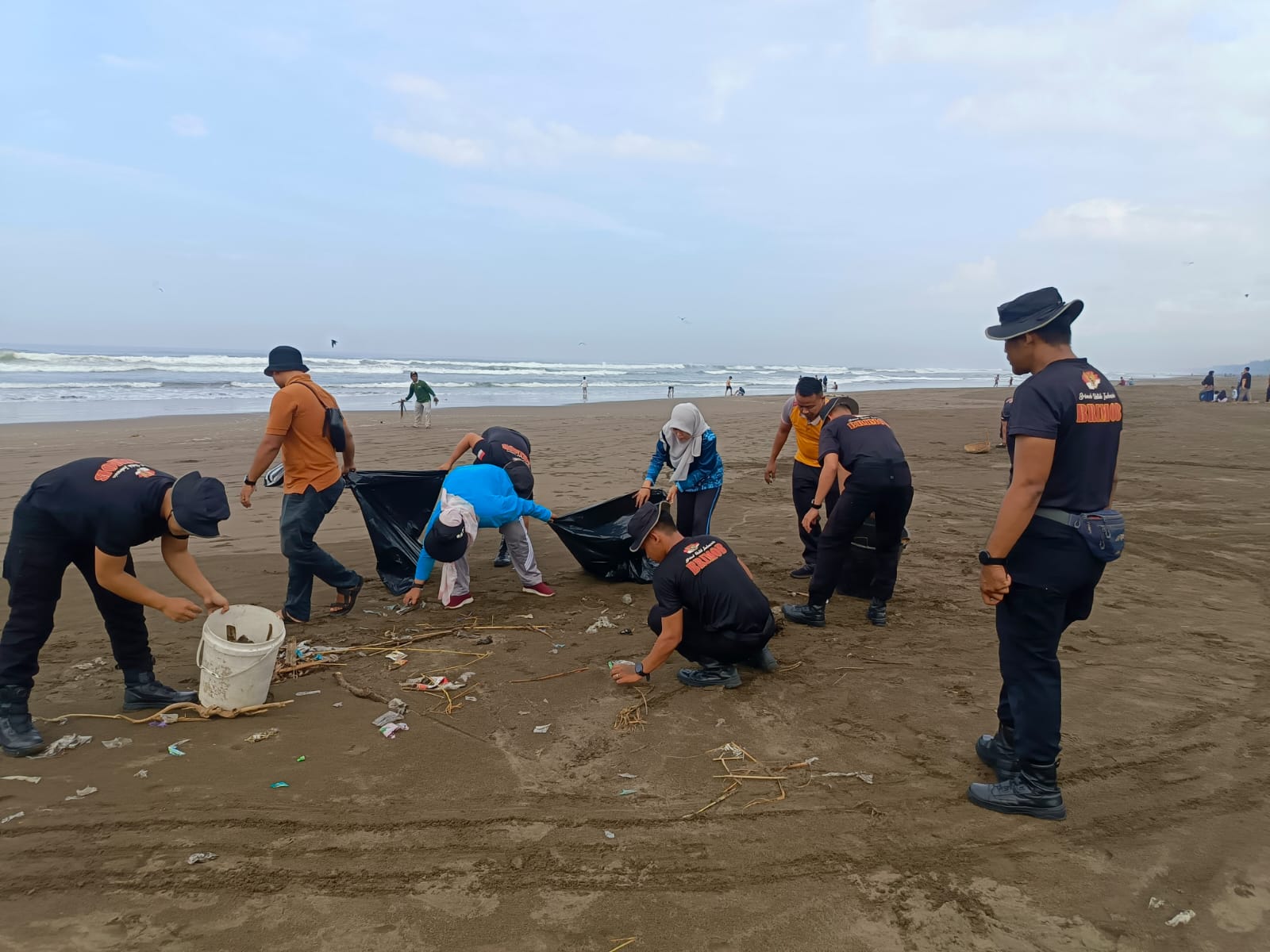 Sejak pukul 07.00 WIB, pemandangan berbeda terlihat di bibir pantai dan area publik. Para personel Brimob dengan seragam khasnya tampak memegang sapu, cangkul, jaring, hingga sekop. Mereka bahu-membahu bersama unsur TNI, perangkat desa, dan masyarakat setempat untuk mengangkat sampah plastik, membersihkan rumput liar, serta memastikan saluran air bebas dari sumbatan.